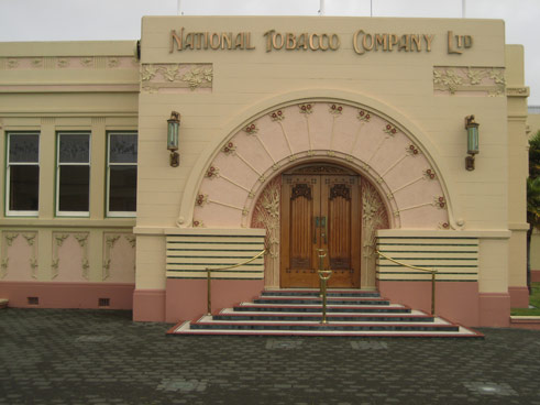 Napier ist deshalb zur artdecostadt geworden, weil es in den 30er jahren ein ziemlich heftiges erdbeben hier gab, das grosse teile der stadt zerstörte und was danach noch stand hat das feuer vernichtet. dabei sindich glaube 30km² neuland enstanden, weil sich die erdoberfläche zum teil bis zu 2 m angehoben hat. nach dem beben wurde dann die stadt in der damals aktuellen stilrichtung, Artdeco, wiederaufgebaut. das hier ist ein gebäude, das artdeco mit Maorimotiven verbindet. |