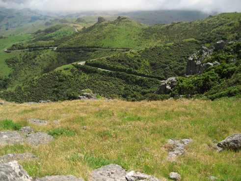 | ja und das hier war schon auf dem weg nach Akaroa, eine vorgelagerte halbinsel, die im wesentlichen aus zwei vulkanen besteht, die sich beide zum meer hin freigesprengt haben (beide in unterschiedliche richtungen) wodurch die gegend einfach ziemlich interessant ist. | :::::::::: |